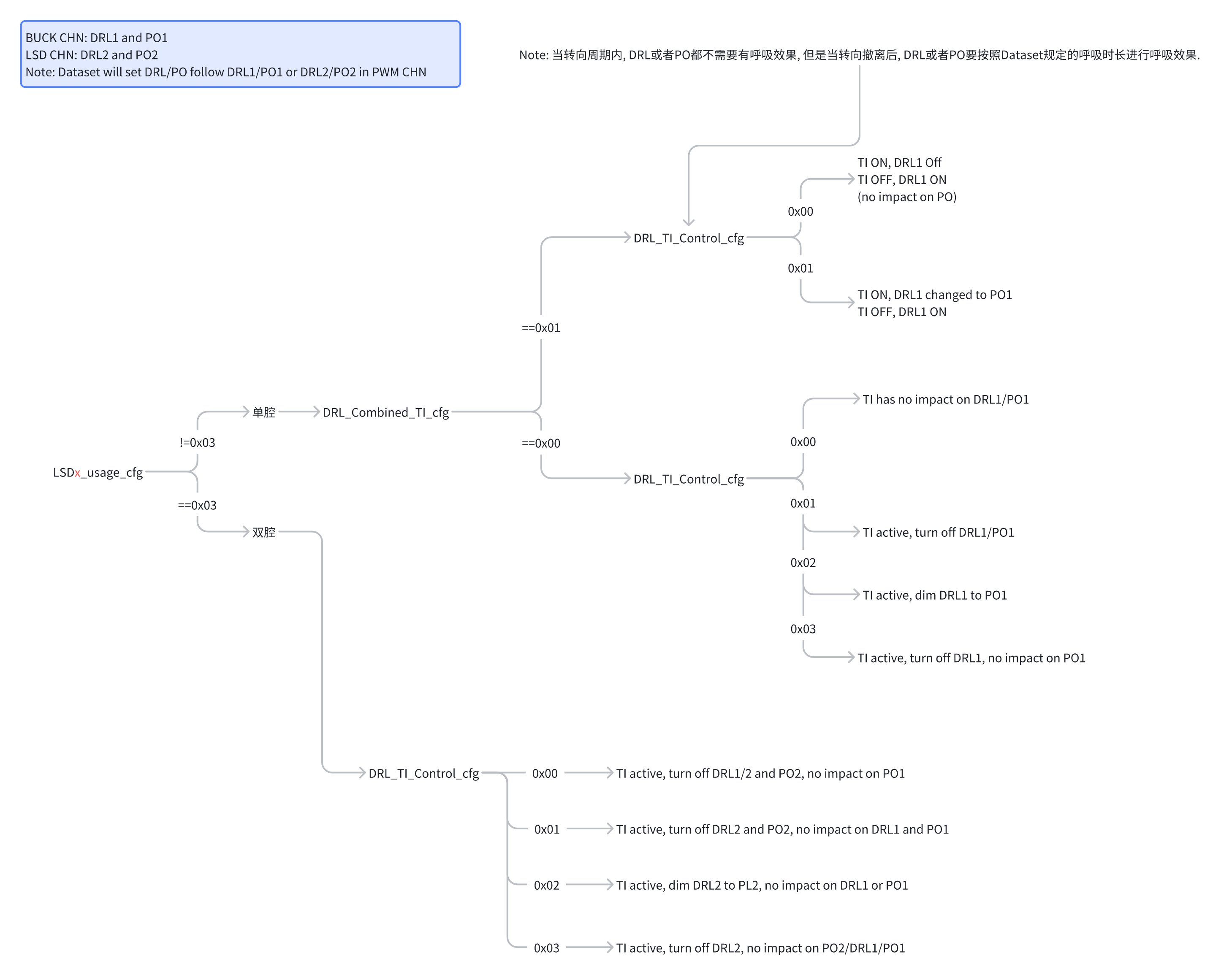 ‘LSDx_usage_cfg’<>0x03, use 1 DRL behavior;‘LSDx_usage_cfg’=0x03, use 2 DRL behavior;