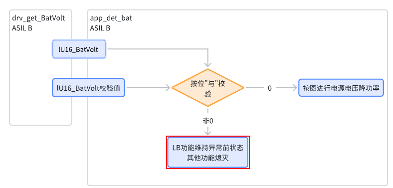 对于电源电压降功率功能,如果Bandgap出现无效状态导致进入功能安全状态,LB功能维持Bangap异常前状态.